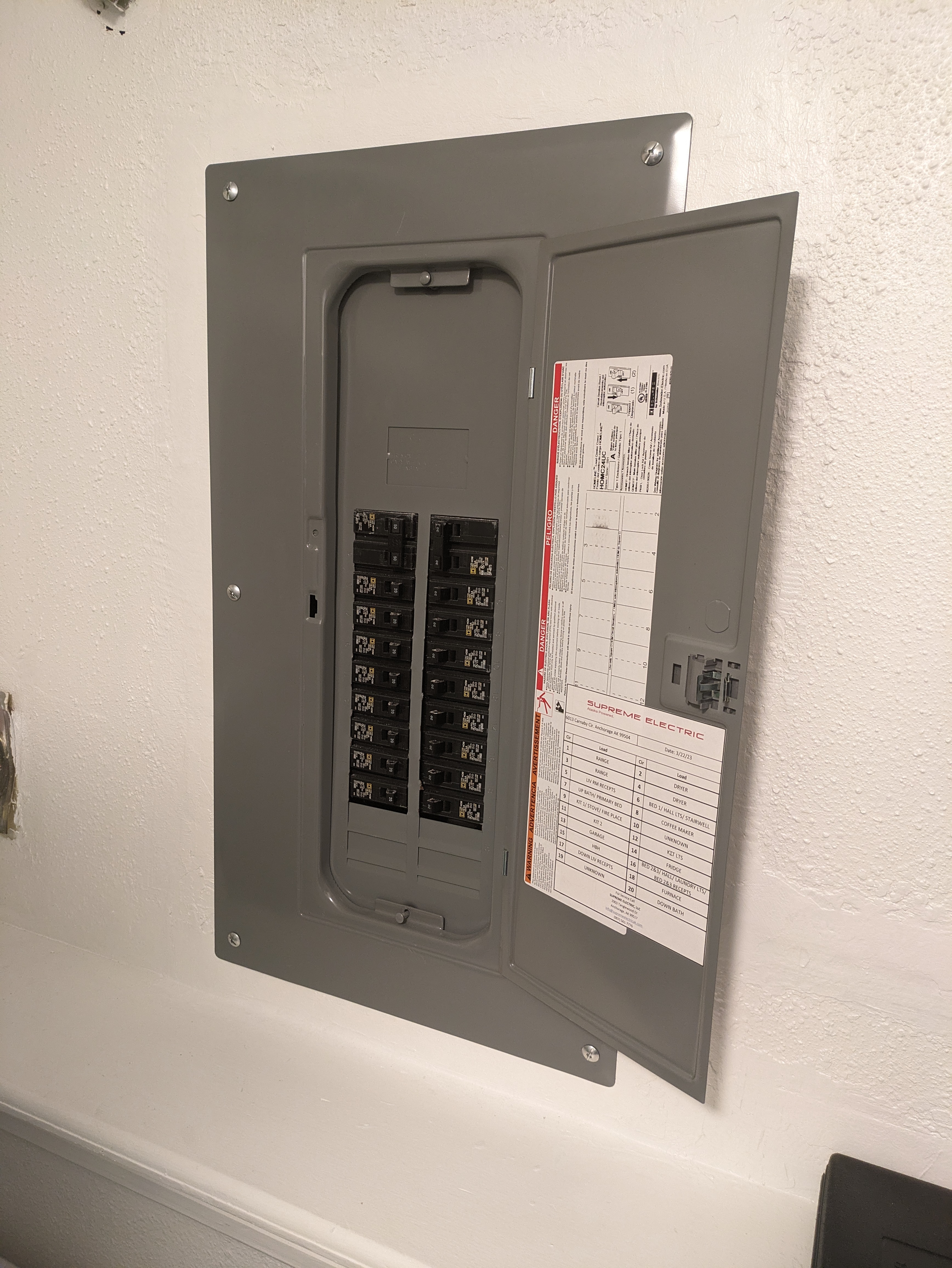 2. Updated panel schedule. Bid based on Supreme limiting tracing out of existing circuits to 1 hour for 2 techs. :